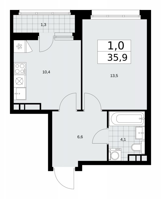 | 1-комнатная | 6.1.2 | 2-кв. 2026 г. | 39.6 м² | 17.4 млн ₽ |