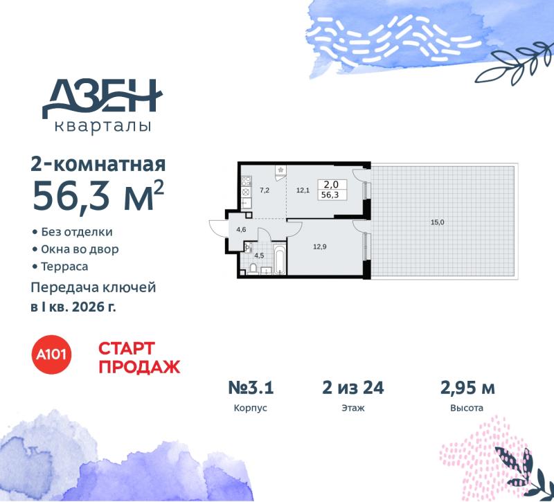 | 3-комнатная | 6.2.1 | 1-кв. 2026 г. | 56.4 м² | 24 млн ₽ |